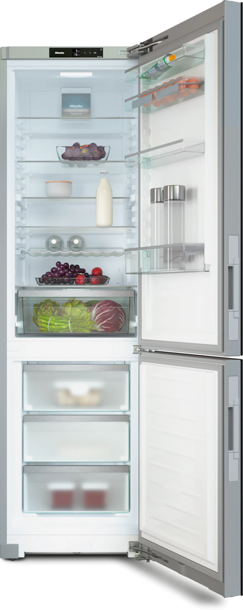 Отдельностоящая комбинация холодильника с морозильной камерой с функциями DailyFresh, NoFrost, DynaCool и дополнительным удобством.