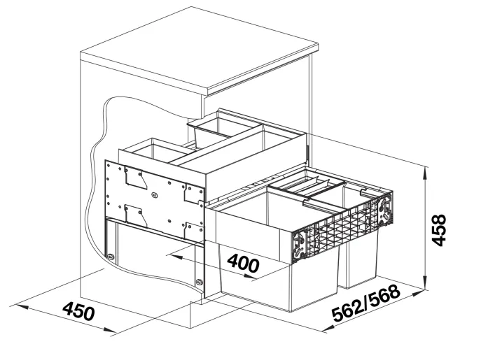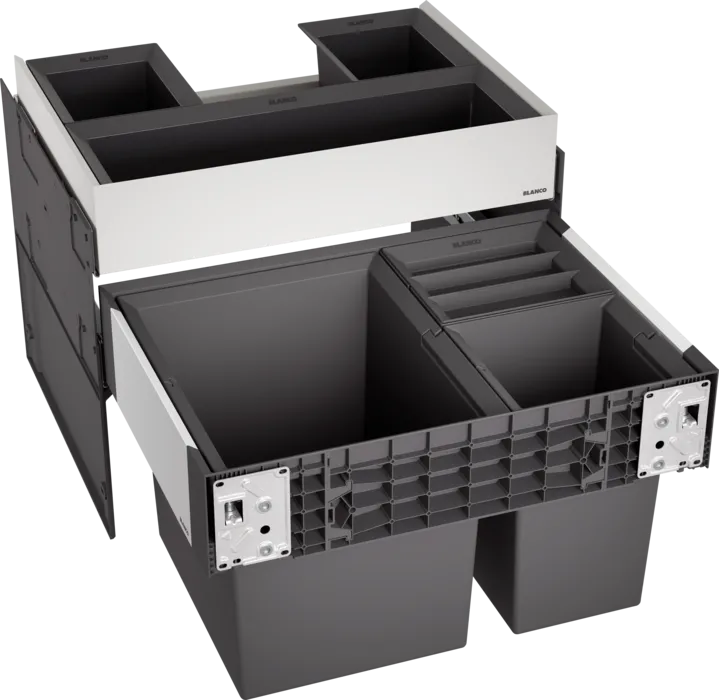 Система сортировки отходов SELECT II XL 60/3 Orga от Blanco воплощает философию бескомпромиссного качества, инновационного дизайна и функциональности, превращая самое активное место на кухне в продуманный, эргономичный и эстетичный центр для приготовления пищи.