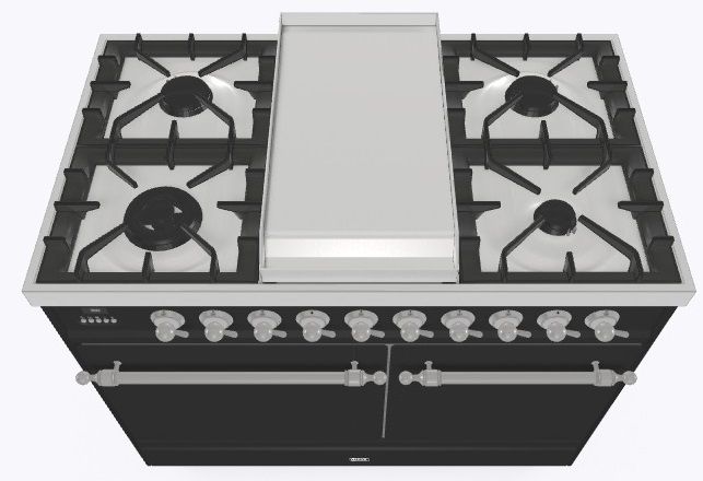 • Тип конфорок: 4 газовые конфорки, Dual конфорка, жарочная поверхность Fry Top