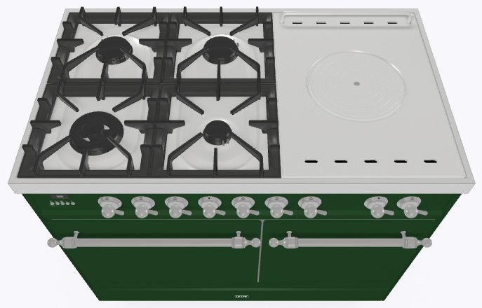 • Тип конфорок: 4 газовые конфорки, WOK конфорка, жарочная поверхность Coup de Feu