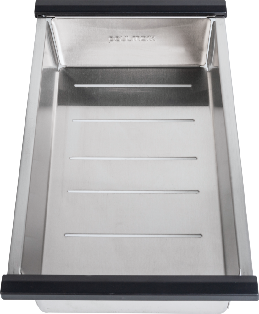 Коландеры Paulmark изготовлены из нержавеющей стали ASIS 304, устойчивы к перепадам температур и к нагрузке. Используются для мытья и размораживания продуктов. Устанавливаются на бортики мойки и в специальные ступеньки моек серии PRO. Размер отверстий в донной части не позволит выпасть даже мелким ягодам и в то же время не препятствует свободному стоку воды. Глубина коландера - 6 см.