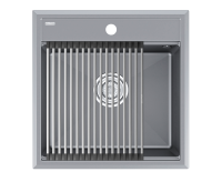 Материал мойки устойчив к сколам, царапинам и деформациям. На горизонтальных гранях чаши мойки предусмотрены специальные выступы-ступеньки, которые позволяют использовать такие аксессуары, как ролл-маты, доски, коландеры и пр. для создания дополнительной рабочей поверхности на кухне.