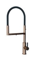 Гибкий силиконовый излив оснащен функцией деликатного душа и магнитным механизмом фиксации в задней части латунного корпуса. Он позволяет ополоснуть посуду или мойку в любой ее части или наполнить емкости даже на столе рядом с мойкой.